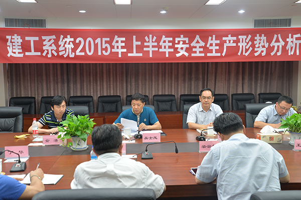 8月5日,建工控股系統2015年上半年安全生產形勢分析會在運河城市廣場揚建集團會議室召開,市安監局副局長戚安寶、市建筑安監站站長顧勇軍、市安監局綜合監管處處長俞湛以及華建、揚建、揚安的安全生產負責人、安全科長和建工控股職能部門負責人等16人出席會議,會議由建工控股公司黨委副書記、副總經理、安全生產領導小組副組長吳士茂主持。
