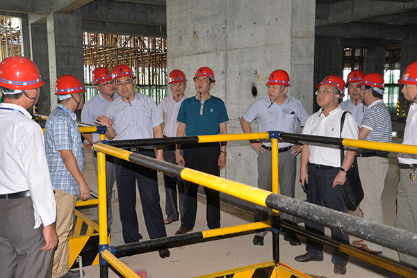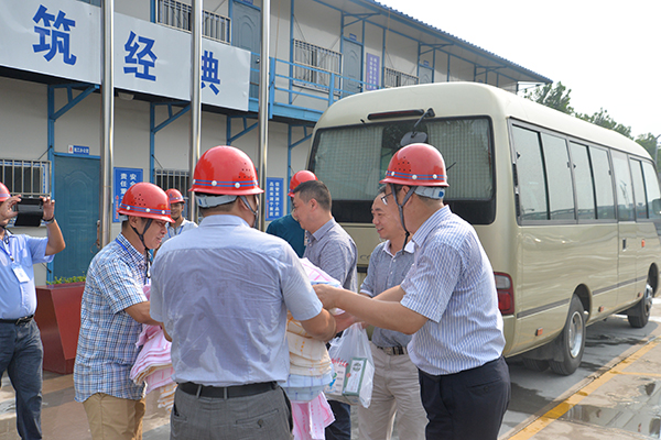 會前,與會人員還參觀了由揚建承建的七二三所科研樓和參建的新萬福大橋工程,各位領導和專家深入施工一線調研指導,為項目一線施工人員送去防暑慰問品,詢問了解安全生產保障措施并叮囑確保夏季汛期和高溫季節的施工安全。