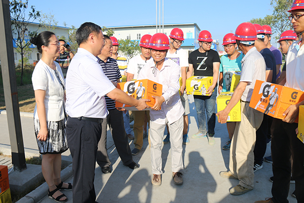 各位領導還慰問了高溫中戰斗在一線的工人,關囑他們注意安全,注意身體。