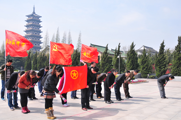 總部開展祭掃革命烈士墓活動 時間:2013-04-034042 4月3日,總部機關黨支部和團委聯合開展祭掃革命烈士墓活動,總部機關、華建置業20余名同志參加。紀委副書記、黨辦主任陳緒寶主持活動,副總經理兼總工程師程杰帶領大家向烈士紀念碑三鞠躬,并敬獻了鮮花,隨后大家共同參觀了烈士英雄事跡展。