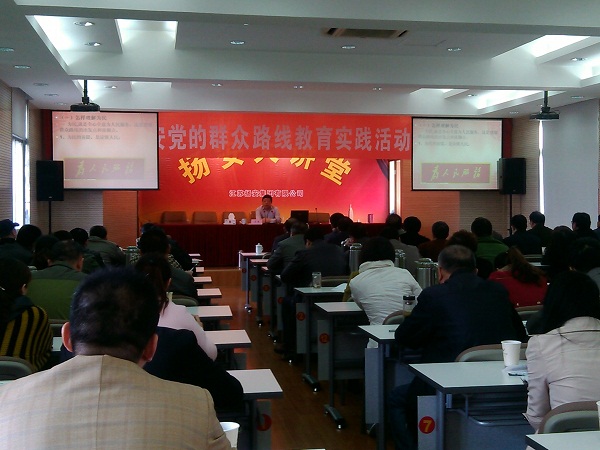 揚安集團舉辦黨的群眾路線教育實踐活動專題講座 時間:2014-04-033147 4月3日上午,揚安集團舉辦黨的群眾路線教育實踐活動專題講座,黨委書記李幼杰主持,揚州市委黨校王淦教授主講“堅持群眾路線,為民務(wù)實清廉”。講座主會場設(shè)在集團總部,黨委領(lǐng)導(dǎo)班子全體成員、總部部室管理人員、在揚分(子)公司黨員、入黨積極分子代表70余人參加;駐外分公司黨支部采用電話連線形式,組織黨員在各分會場聆聽。