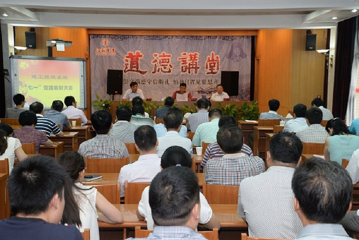 7月18 日下午,揚州建工控股公司黨委在總部一樓會議室召開了系統“七一”黨建表彰大會。大會由黨委委員、紀委書記錢啟明主持,黨委副書記吳士茂宣讀了表彰決定,黨委委員程杰在主席臺就坐。會議對先進基層黨組織、優秀黨員代表和優秀黨務工作者代表進行了頒獎。受表彰先進集體代表、先進個人,建工控股機關、華建總部全體黨員、入黨積極分子,各基層黨組織負責人、黨務部門負責人、黨員代表共68人參加了會議。