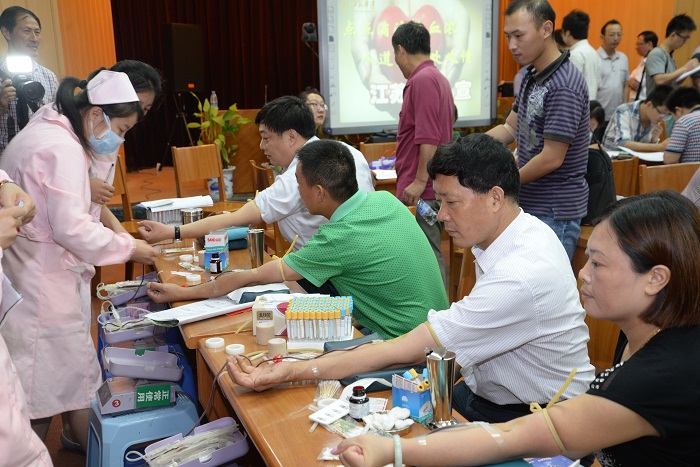 建控系統組織無償獻血活動 時間:2014-07-303208 每年組織干部職工參加全市無償獻血活動已成為建工控股公司長年堅持的一項精神文明建設的常態工作。自2002年以來,公司連續12年被上級評為無償獻血先進單位。 7月29日上午,公司再次組織系統干部職工在公司一樓會議室參加無償獻血活動。此次活動得到了系統各單位大力支持,建控公司領導吳士茂、錢啟明帶頭參加,系統共有164名干部職工參加了無償獻血活動。值得一提的是,江蘇華建員工陳剛,已連續7年捐獻血小板,每年捐獻6次,總獻血量已超過一萬毫升,為系統員工樹立了榜樣。