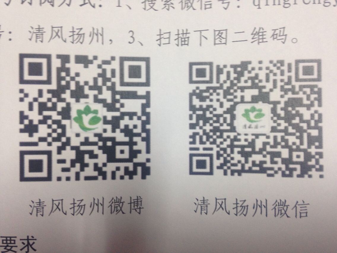 新浪微博關(guān)注方式:1、在新浪微博中搜索昵稱“清風(fēng)揚州”點擊關(guān)注,2、掃描下圖二維碼。