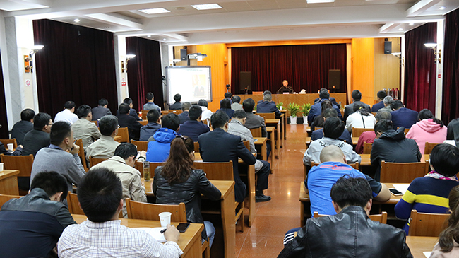 10月25日下午,建工控股公司黨委結(jié)合今年開展的“兩學(xué)一做”學(xué)習(xí)教育,組織召開市第七次黨代會(huì)精神學(xué)習(xí)報(bào)告會(huì),特邀市委黨校原教育長(zhǎng)、蔣伏虎教授作主題報(bào)告,公司在揚(yáng)領(lǐng)導(dǎo)王宏、吳士茂、錢啟明和系統(tǒng)單位、分支機(jī)構(gòu)相關(guān)人員近70人現(xiàn)場(chǎng)參會(huì),華建各區(qū)域公司和分支機(jī)構(gòu)通過視頻聆聽了報(bào)告,會(huì)議由紀(jì)委書記錢啟明主持。