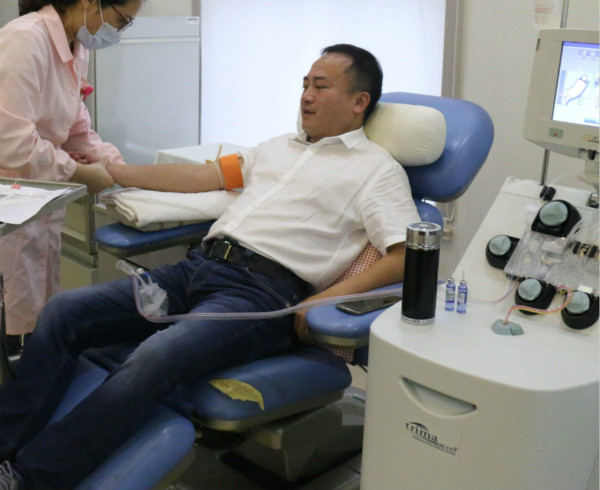 8月17日上午7時(shí),建工控股系統(tǒng)191名干部職工不顧臺風(fēng)“溫比亞”的肆虐,冒著瓢潑大雨趕到了市中心血站參與獻(xiàn)血活動,參與獻(xiàn)血人數(shù)創(chuàng)歷史新高?,F(xiàn)場,大家認(rèn)真填表、審核、體檢、化驗(yàn)、采血,各個(gè)環(huán)節(jié)無縫銜接,秩序井然。每個(gè)人的臉上洋溢著快樂的笑容,他們深知在不久的將來,這些熱血將會挽救他人的生命。在血小板采集室,又見到了熟悉的面孔,江蘇華建公司總經(jīng)濟(jì)師、地產(chǎn)集團(tuán)總經(jīng)理徐剛等8位同志連續(xù)多年堅(jiān)持參與血小板的捐獻(xiàn)。經(jīng)過大家共同努力,建工控股系統(tǒng)職工成功捐獻(xiàn)61000余毫升“溫暖”血液。