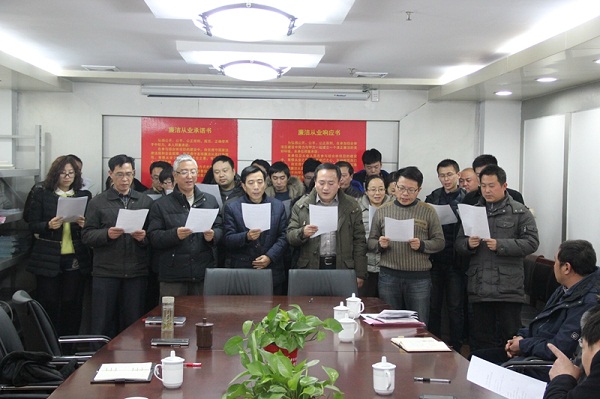 會(huì)上,地產(chǎn)公司經(jīng)營班子集體簽訂了西區(qū)科技綜合體項(xiàng)目廉潔從業(yè)責(zé)任書,全體員工簽署了廉潔從業(yè)承諾書,地產(chǎn)公司總經(jīng)理徐剛與施工、監(jiān)理等參與建設(shè)單位代表簽訂了廉潔從業(yè)合同。地產(chǎn)員工和參與建設(shè)的各方代表都進(jìn)行了廉潔從業(yè)宣誓。